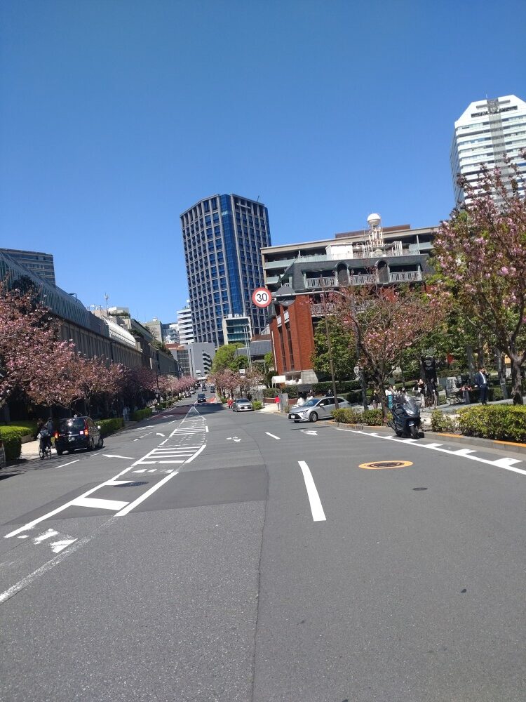 桜並木は ずっと向こうまで続いています