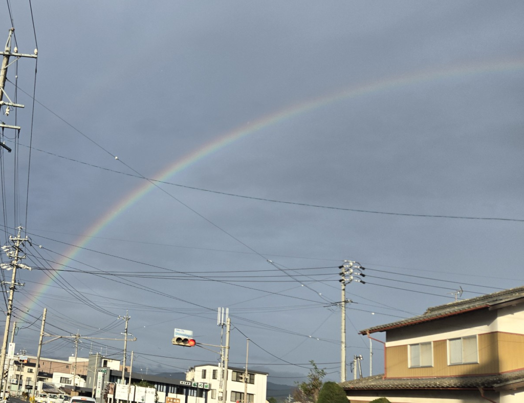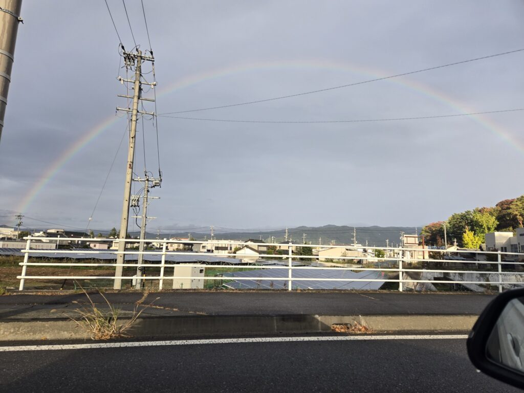 虹 2025年11月12日 最終更新日時 : 2025年11月12日 staff_tokyo 先日ドライブ中に遭遇した虹🌈 久々に欠けてない完全体! 雨が止んで、ちょっと日が差した瞬間、みるみる大きな虹が現れて、数分で消えてしまったけど、色もクッキリ出てて、すごく大きな虹でした!